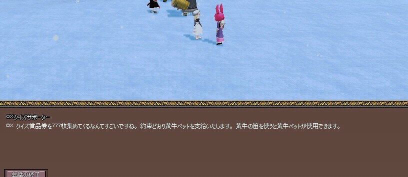 また、正解の数だけ「〇×クイズ商品券」というものももらえて、これは777枚集めると、ペットの黄牛がもらえるという特典付き。